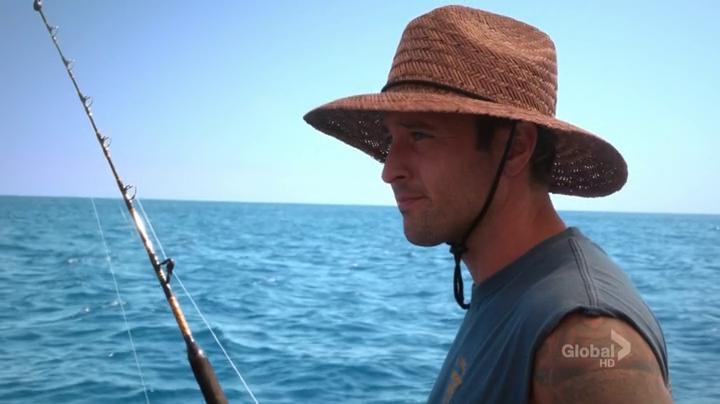 As the story begins, McGarrett and Danno are out on the ocean in the middle of nowhere catching tuna. A guy named Gil Scates (Todd Stashwick) appears in a dinghy, like he is in need of rescue. He pulls out a gun and makes the Five-0 duo jump into the drink. Before he leaves in their boat (which actually belongs to Chin Ho's uncle), Scates shoots holes in the dinghy. McGarrett promptly repairs these using some technique involving a plastic gas line that I can't understand. There are scares with a shark as McGarrett attempts to tow the boat to shore. Eventually, the two of them come across a dysfunctional yacht containing the dead body of one Al Burgess, all of which they correctly assume was connected with the fleeing Scates. The Coast Guard eventually picks up McGarrett and Danno, and promptly handcuffs them because they are on this yacht with a dead body and lacking any identification.