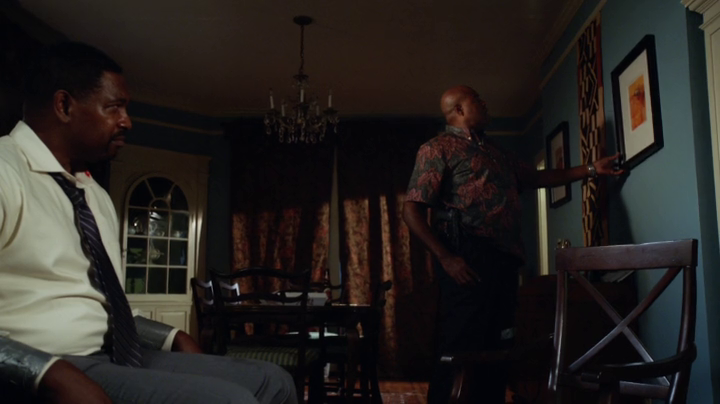 Turns out that Cindy had a criminal history, including marine theft and armed robbery. After finding the stolen painting on a yacht chartered by Cindy and her partner-in-crime Simon Moore (Jay Hector), ostensibly to use for transporting the treasure off the islands, Jerry then analyzed the painting's frame to determine clues to another location where the treasure might be buried. Five-0 arrived at this location, where Cindy and Moore were digging a huge hole in the basement of a house while its occupants were tied up upstairs.