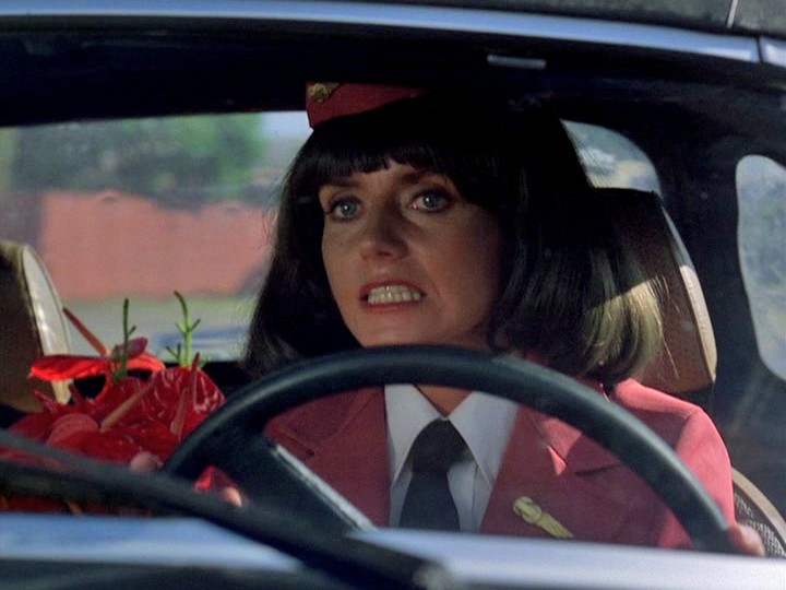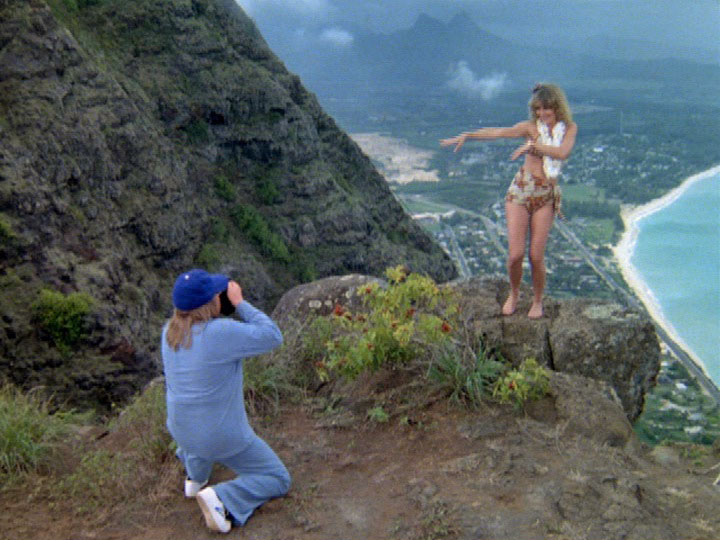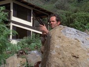 While McGarrett is waiting for the stooge, he is entertained by a snake charmer who has a cobra. McGarrett tells the guy, "Okay, beat it, pal. I don't dig snakes." Dolores shows up 3 minutes and 40 seconds after McGarrett arrived, somehow knowing exactly where he went. When she enters the cable car station, she sees her husband, and screams his name. McGarrett, who has met the stooge outside, pushes the guy down a hill where he is busted by several undercover cops under Danno's direction.