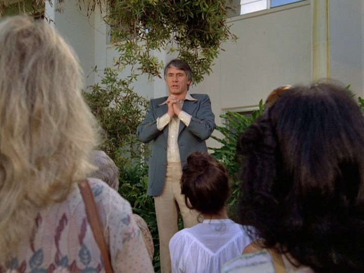 The show begins with people waiting for an elevator at the Hawaiian Regent Hotel. Typically when an elevator is seen on the show like this, something horrible will soon happen, and it does indeed. After people exit from the elevator, a man is seen leaning up against its wall and he slumps to the floor dead. A woman screams, though it is not a glass-shattering scream like some we have heard in the past. Interestingly, we do not see the person who killed him leaving the elevator, whose identity we learn later.