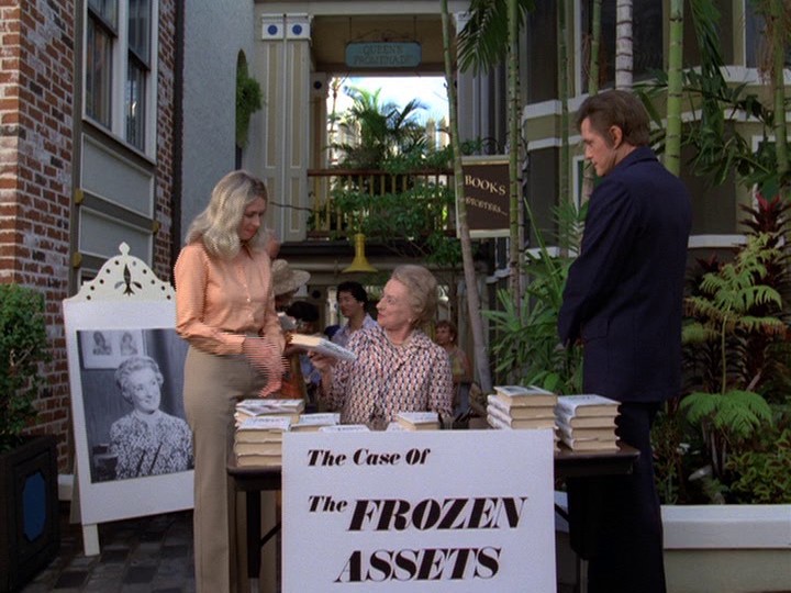 As the show ends, Dolores, holding McGarrett's arm at the airport, tells him that her husband "was thinking only of himself, even at the last, wasn't he?" and he agrees with her. McGarrett sends Dolores off, saying "Goodbye, pretty lady." She gives him a smooch and he says "That's the nicest thing that's happened to me in Singapore."