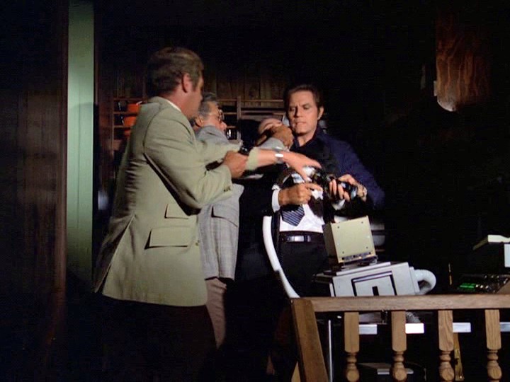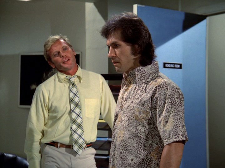 This is by far the worst season opener — an unbelievably boring episode with uninspired direction by Barry Crane, a mediocre script by John Melson and indifferent acting, plus a very dull score by John Cacavas which uses a clangy, overamplified harpsichord and where the banal music often has no connection to what is happening on screen.