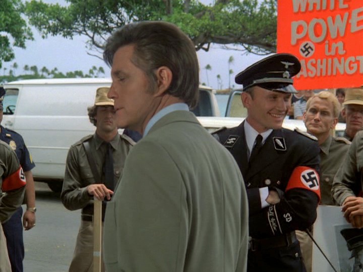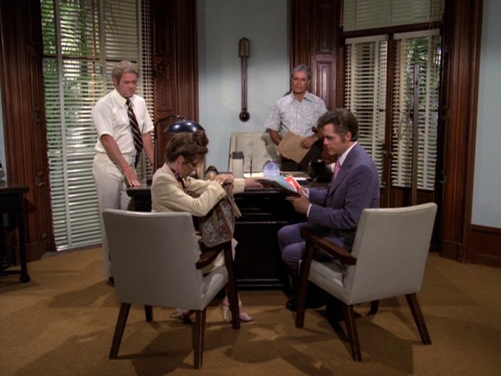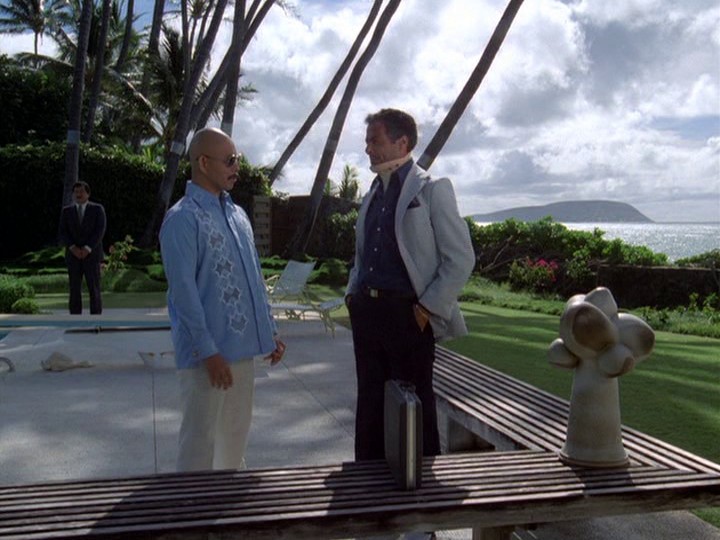 - McGarrett wears a leisure suit in this show, the first of many such fashion mistakes in this and the final season.
