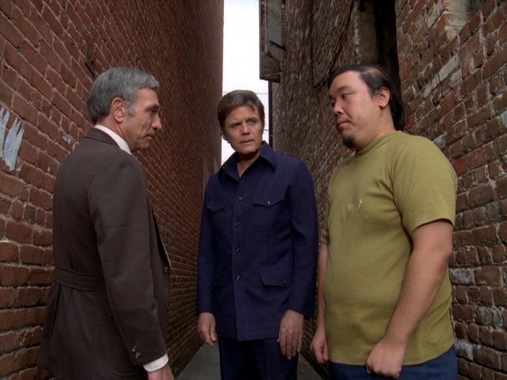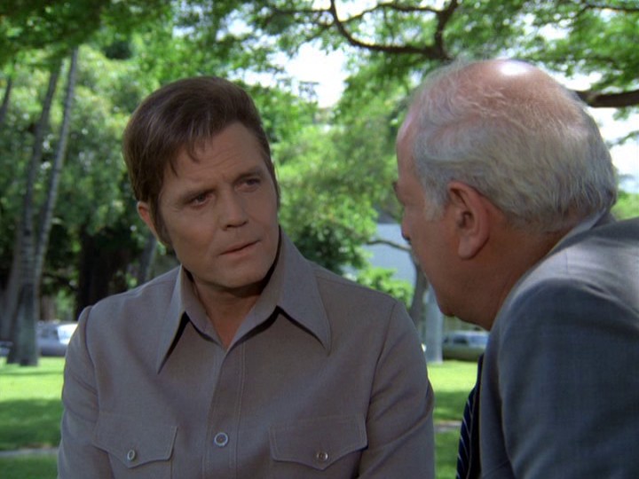 But, along with the lame attempts to set up Rathman as an "absent-minded professor," this is just yet another stupidity in an episode which is totally mediocre from beginning to end, including the last scene between Rathman and McGarrett which is cutesy-poo in a nauseating manner highly reminiscent of the endings of Streets of San Francisco episodes.