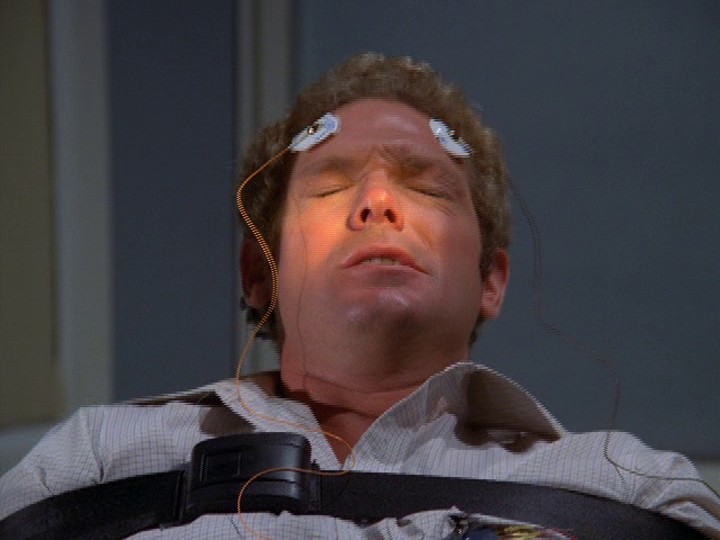 Although he is unaware that Hansen was driving the car, which she reported as "stolen," McGarrett is suspicious because she has no alibi for the time of Conrad's death. Hansen insists that McGarrett give her a lie detector test, and he is only too willing to oblige. This test is given in a somewhat informal manner, with a mix of the usual yes/no type of questions and others which she answers, but follows up with a comment of some kind. When a telephone in the room rings, she has a very adverse reaction. At the test's conclusion, Fallon figures that she has aced it.