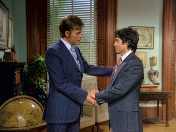 The mysterious intelligence agency in Washington sends agent Glen Fallon (Steve Kanaly, later of Dallas) to work along with McGarrett. When the two of them talk to the top brains at the foundation, Conrad says "Your job is going to be harder than Chinese arithmetic."