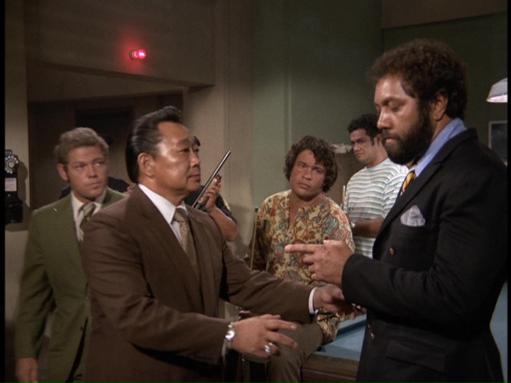 - This is the second military-themed show in a row. Moki Palacio, who appeared as a dope pusher in the previous show, "Follow The White Brick Road," is seen as the telegraph clerk. When Five-O tries to nab Ralston at the airport, Chin Ho seems to be standing in front of the same sign with Japanese characters as he was in previous show, except in that episode the sign was in a hotel.