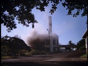 This explosion is the show's only major failing. When McGarrett leaves Duncan's, it's about a minute and 10 seconds before the place is consumed by fire. Considering he would be at least half a mile away if he was driving at 30 miles an hour (probably not this slow), it's unlikely that McGarrett would hear the explosion, which seems to be very loud. This would be more convincing if McGarrett had seen a column of smoke rising from the house, rather than the point of view of the burning house on the beach.