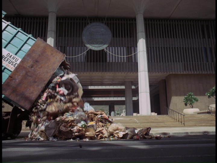 - There are stock shots of McGarrett running down the Palace steps past tourists and driving past the Dillingham Fountain, as well as a Five-O car driving off into the distance.