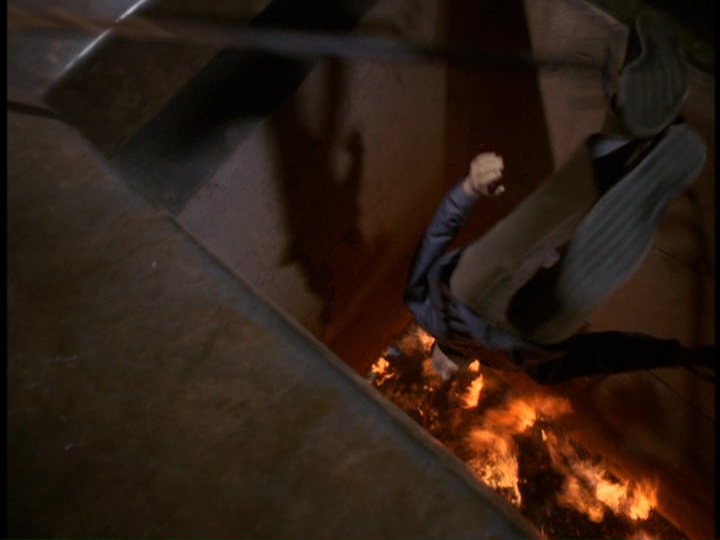 #16, 31:41, 01:00, 11:30, Wellman escapes from Danno, he jumps from the building; Wave at end of Act Three.