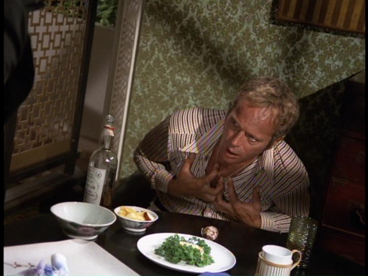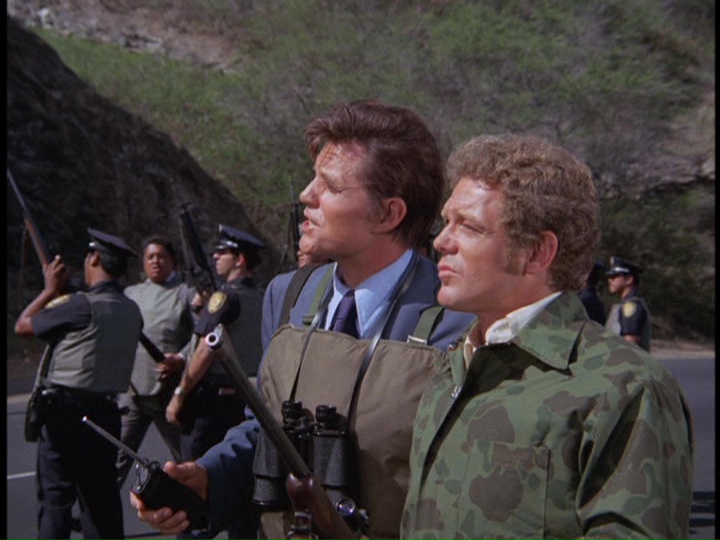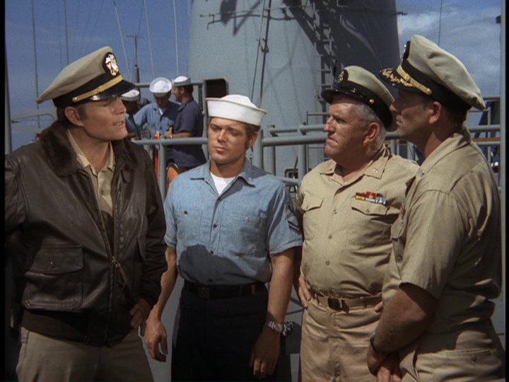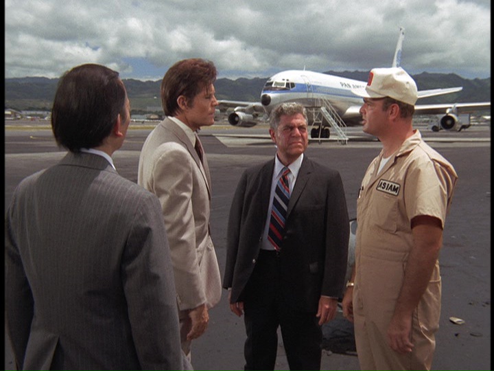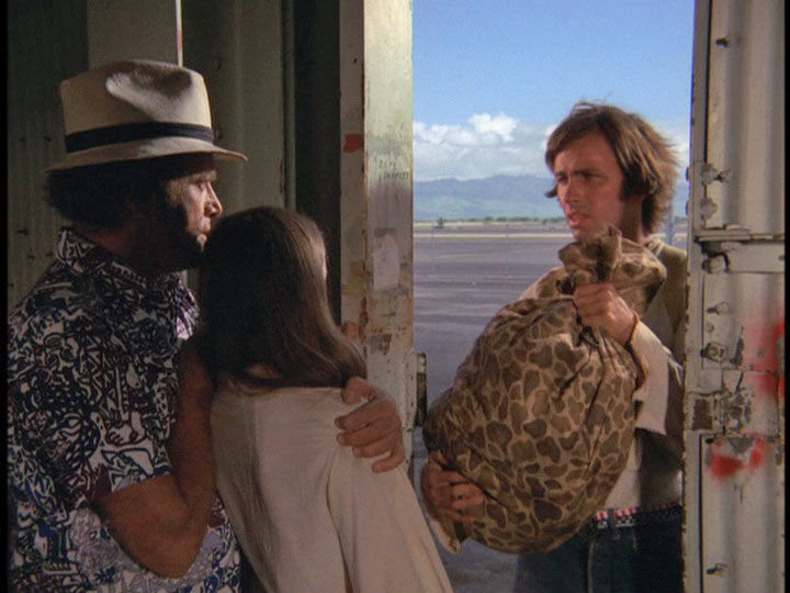 In his usual capacity as a "young man" capable of looking like he could be in the military, Danno takes a fast plane to Subic and goes undercover on board the Haskell posing as an assistant to the Chief Hospital Corpsman Franklyn (Charles Gilbert) to try and figure out how the heroin is being smuggled. Danno has no luck in finding "H" anywhere. He tells Franklyn, "we haven't even turned up a joint of marijuana so far."