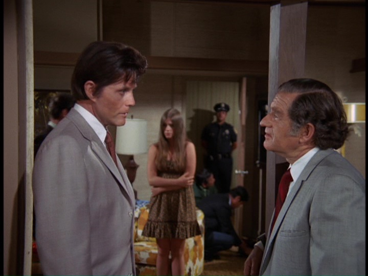 Meanwhile, Ralston, pretending to be Nichols, sends a Western Union telegram to Amy Carter (Marie Cheatham) wife of another former fellow officer, Lt. Dennis Carter, who we saw at the beginning of the show, played by Richard Kelton. He is not expected to come to Hawaii for another month, but the telegram says that he is due for five days of R&R, arriving the next day, and his wife should come to Hawaii immediately. However, after Carter's wife leaves Florida, a Army man comes to her house to tell her mother that the lieutenant has been killed in action.