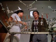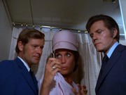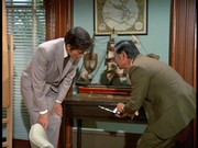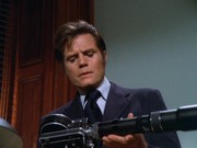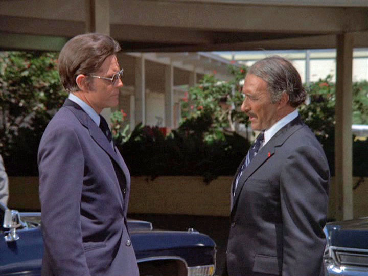 - Les Hutchens sends along an anecdote: "I was with Keene Curtis during the filming of this episode. There was an interesting problem during filming where Mr. Curtis' own suit needed to be 'altered' to make it look as if it had been shot. They had filmed for two days with his suit and now had to put a bullet hole in it. Keene had strong reservations about this so a special effects man sewed some thread into the shoulder, and brushed it with some chalk. The final effect as seen on tv was very effective, and his suit was totally undamaged."