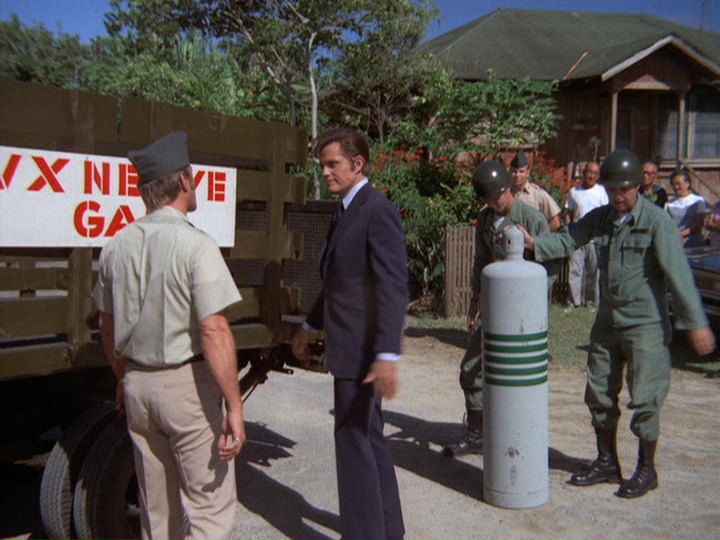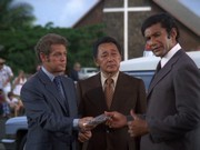 ○ When questions are raised about why McGarrett isn't at the shootout with McKinney, Danno says that he is with the Governor. In real life, this is because this sequence was filmed on Saturday, a day when Jack Lord did not work on the show. I was told that Jack Lord typically worked six days a week during filming of the show (Monday through Saturday). This does not preclude him not working on this particular day, though, assuming it was a Saturday.