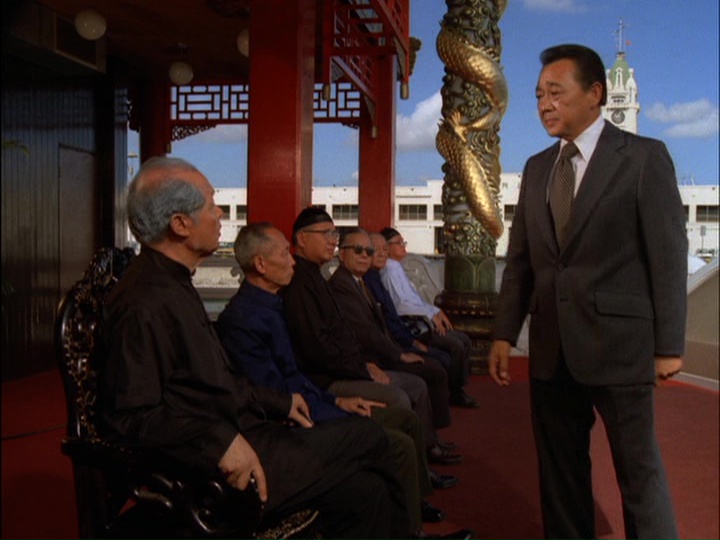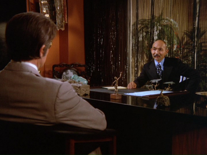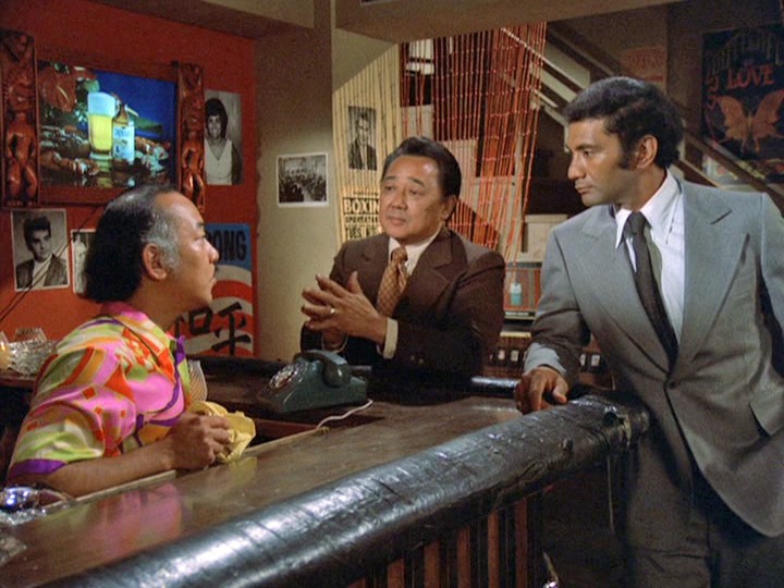 Weber (Norman Wright), manager at one financial institution, get suspicious about Gordon's withdrawal based on calls he's had from associates at other banks and contacts Duke, who says he will send someone to come and take a look. When Weber tells Gordon there will be a delay, Gordon attempts to leave, but after Weber sees Meskill's gun pointed at Gordon's back, there is a shootout with a guard in the bank, who is seriously injured. Meskill is shot dead and an armed citizen in the bank, Everett Chang, United States Congressman, twice elected to the House of Representatives, who attempts to intervene, is wounded and later dies in hospital. There is immediately something odd here. Why does this Congressman have a gun? Was Hawaii an open carry state in 1974?