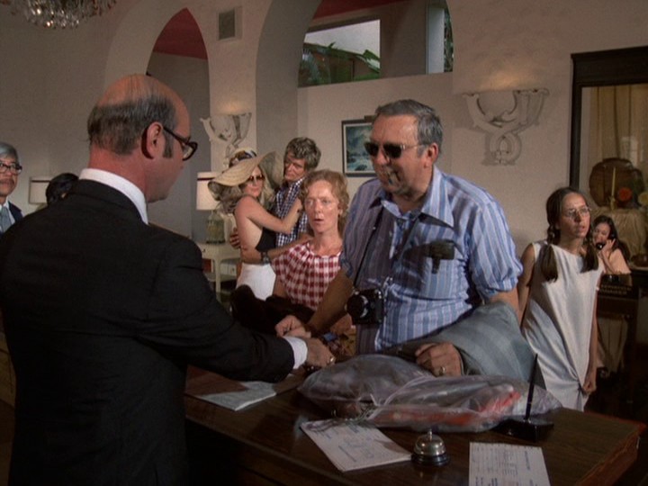 Makes me wonder if it is normal that rich guests would tell their hotel managers information like this, as if they were talking to a doctor or a psychiatrist. Perhaps this is how Bordeaux found about the obscure location of valuables in the Ilikai from the guests telling the manager there — if his office was also bugged — about the shoes and the purse? (Insert Steve Martin "NAAAH" here!)