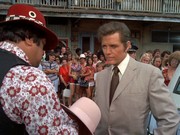 Two other characters are basically red herrings, and not even that. John Byner plays Duffy Malone, a mundane nightclub comic, who is paranoid because he has run up some major gambling debts, "25 or 30 thousand, and into the syndicate's books for maybe double that." Malone comes to McGarrett for protection, but Hawaii's top cop is already seriously out of his jurisdiction, I don't think so!