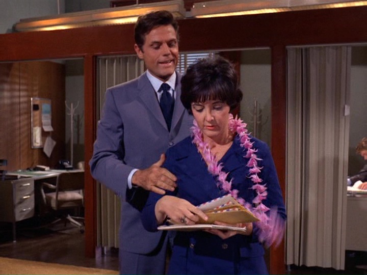 At McGarrett's office we meet the Five-O team: Danno (Tim O'Kelley), Kono (Zulu) and Chin Ho Kelly (Kam Fong). May, the receptionist, is played by Mitzi Hoag. Kono reports that the night before, Hennessey had dinner with Rosemary Quong (Nancy Kwan), a graduate student from the University of Hawaii.