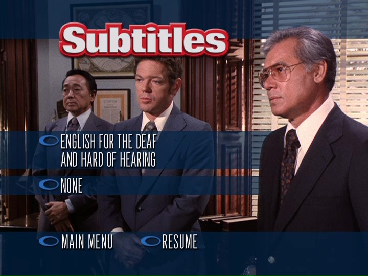 Main menu (contains what looks like a film strip with scenes from episodes running horizontally) — Episode menu — Subtitles menu (identical for all discs)
