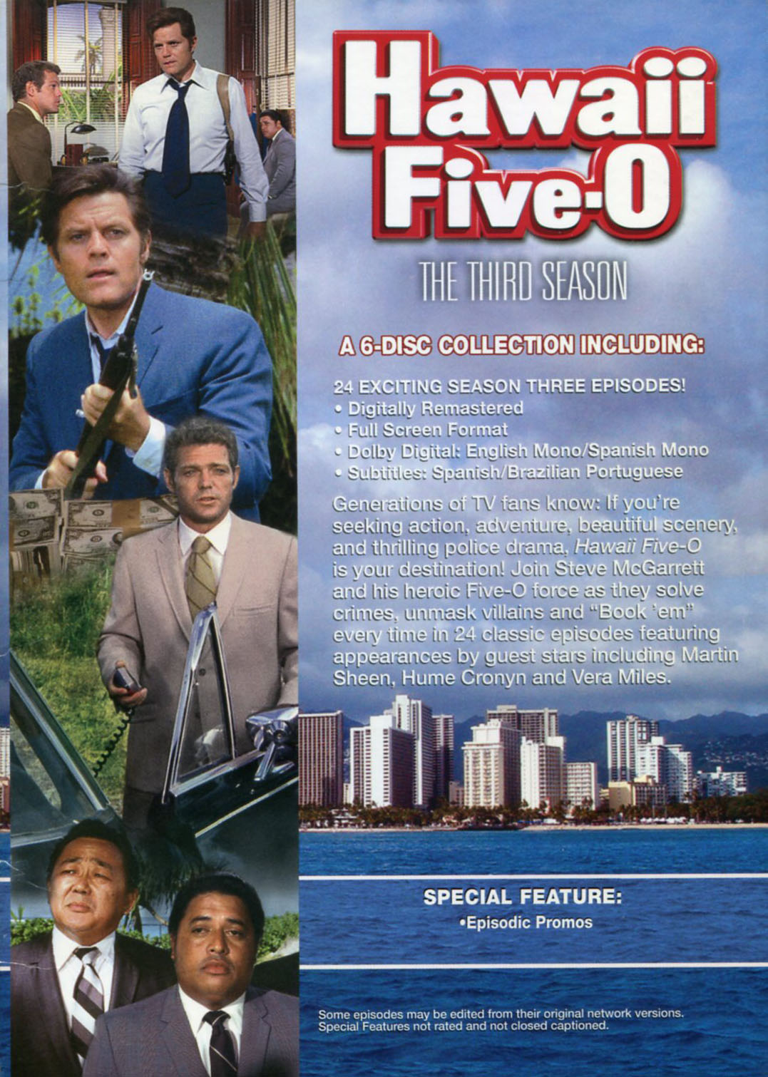 Each of these slim-line cases opens to reveal two DVDs: 1&2, 3&4, 5&6. All the discs in the set all have pictures of the Five-O team on the labels, similar to season one.