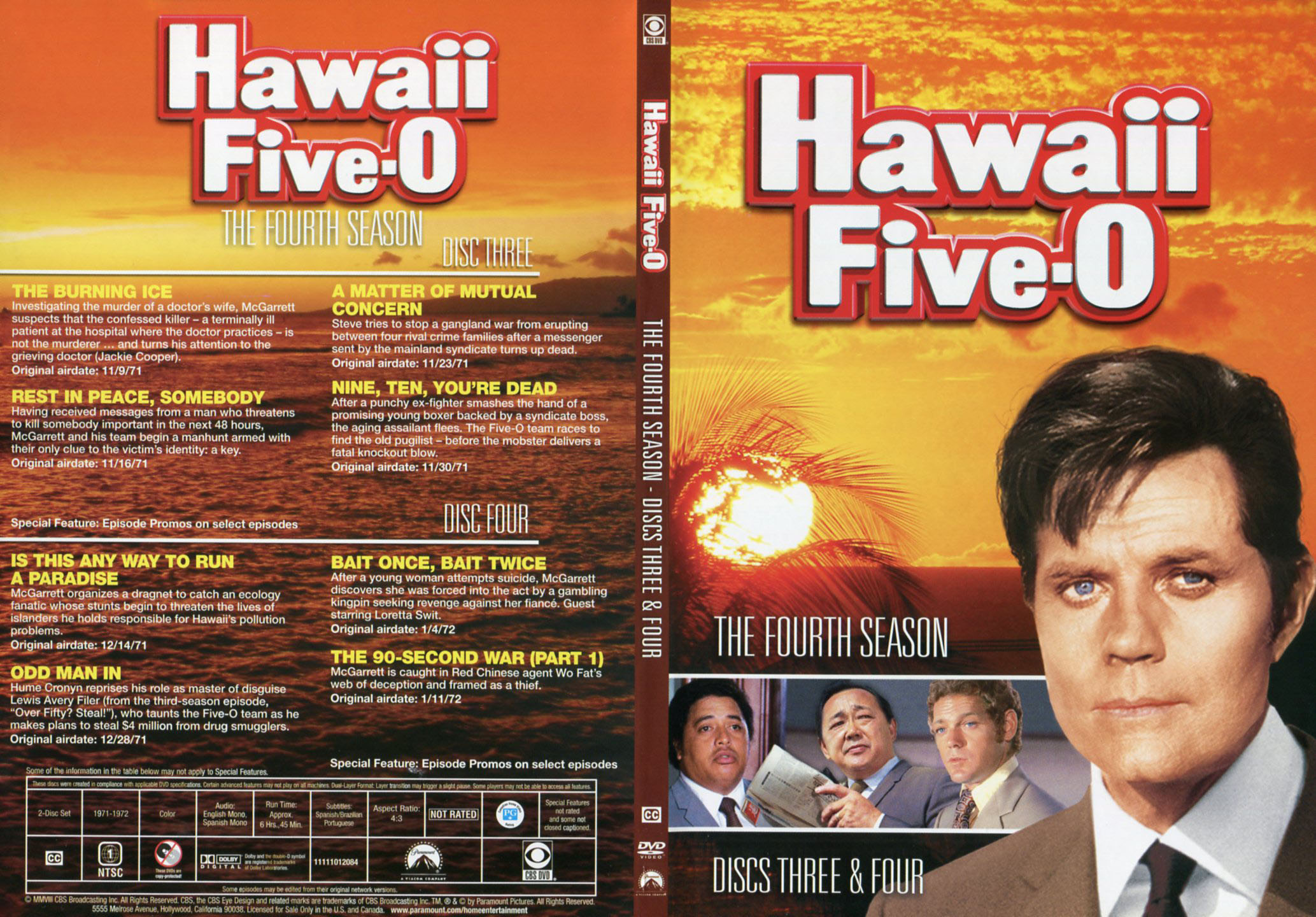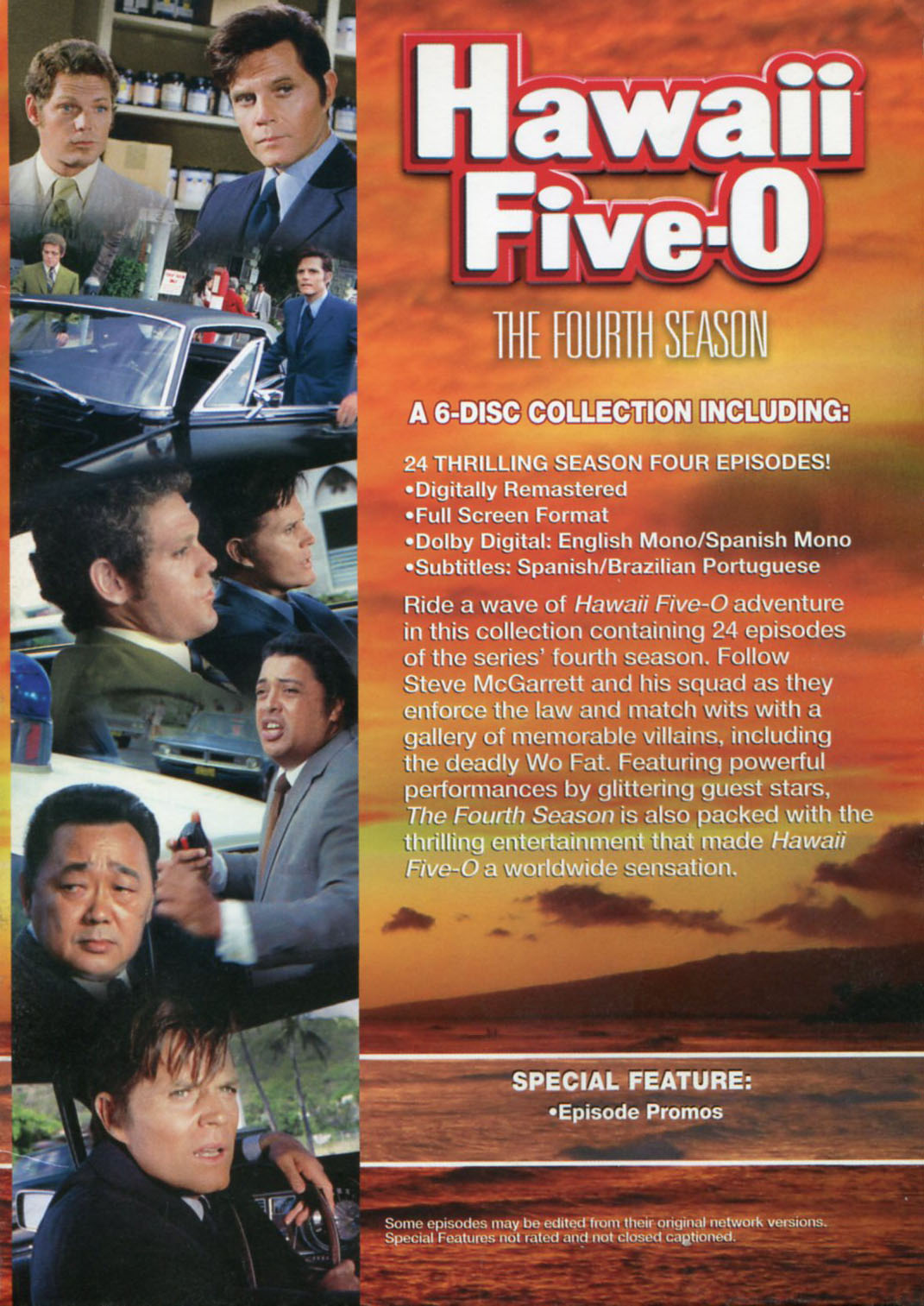 Exterior of slim-line case artwork has a front cover similar to the front cover of the box; the back cover has a listing of episodes on the two DVDs.
